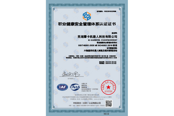 職業健康安全管理體系認證證書