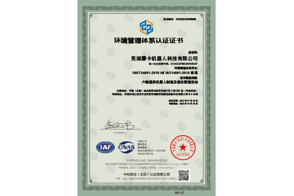 環境管理體系認證證書